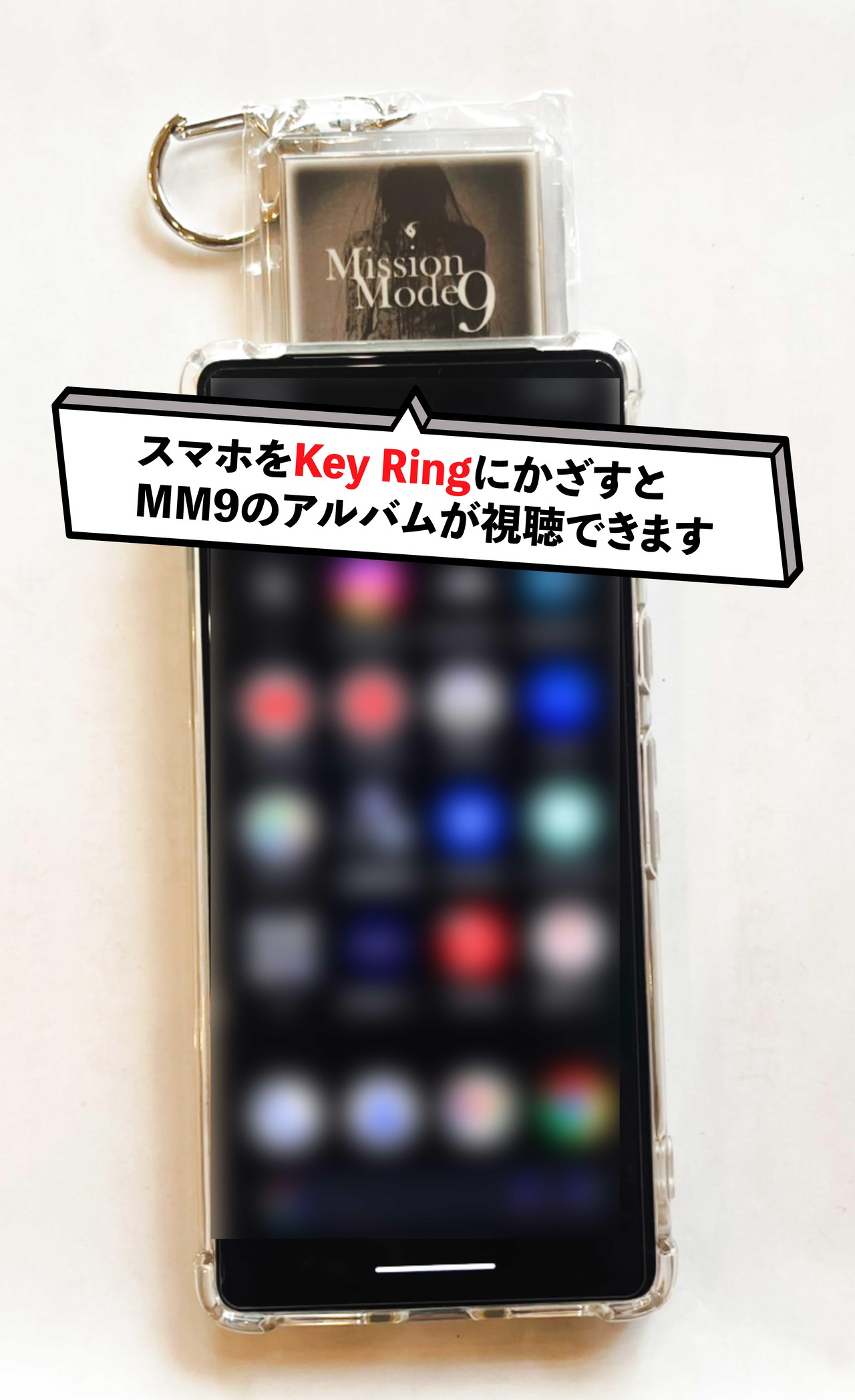 お手持ちのスマホをKey RingにかざすとMM9のアルバムへリンクされ視聴する事ができます!